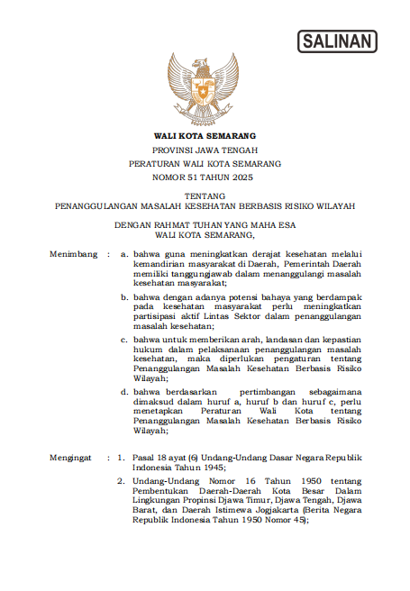 Peraturan Wali Kota Semarang Nomor 51 Tahun 2025 Tentang Penanggulangan Masalah Kesehatan Berbasis Risiko